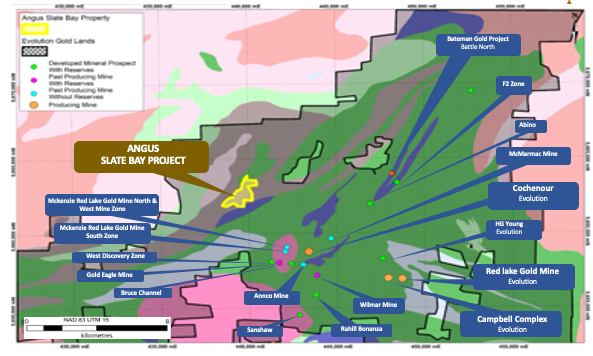 The Slate Bay Project is an exploration property prospective for a copper-gold-silver skarn mineralized system located in the Red Lake gold mining district in Ontario. The Property is located 10 kilometres north of the town of Red Lake, Ontario, within the Red Lake greenstone belt and consists of the eight patented mining claims in southern McDonough Township within the Red Lake gold camp. The Property is royalty-free. No resources or reserves exist on the Property.